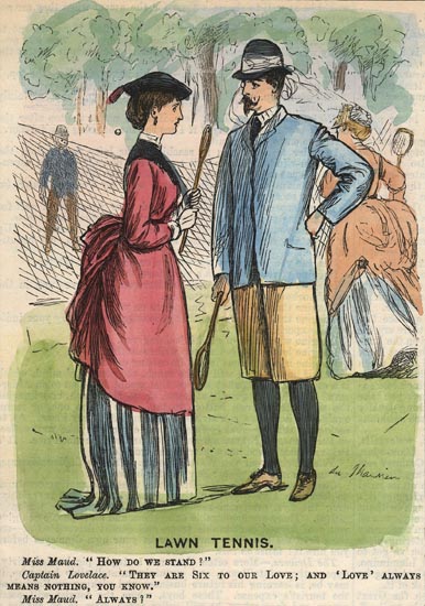 DESCRIPTION: Text under image, "Miss Maud, 'How Do We Stand?' Captain Lovelace, 'They Are Six to our Love; and 'Love' Always means Nothing, You Know,' Miss Maud '"Always!"