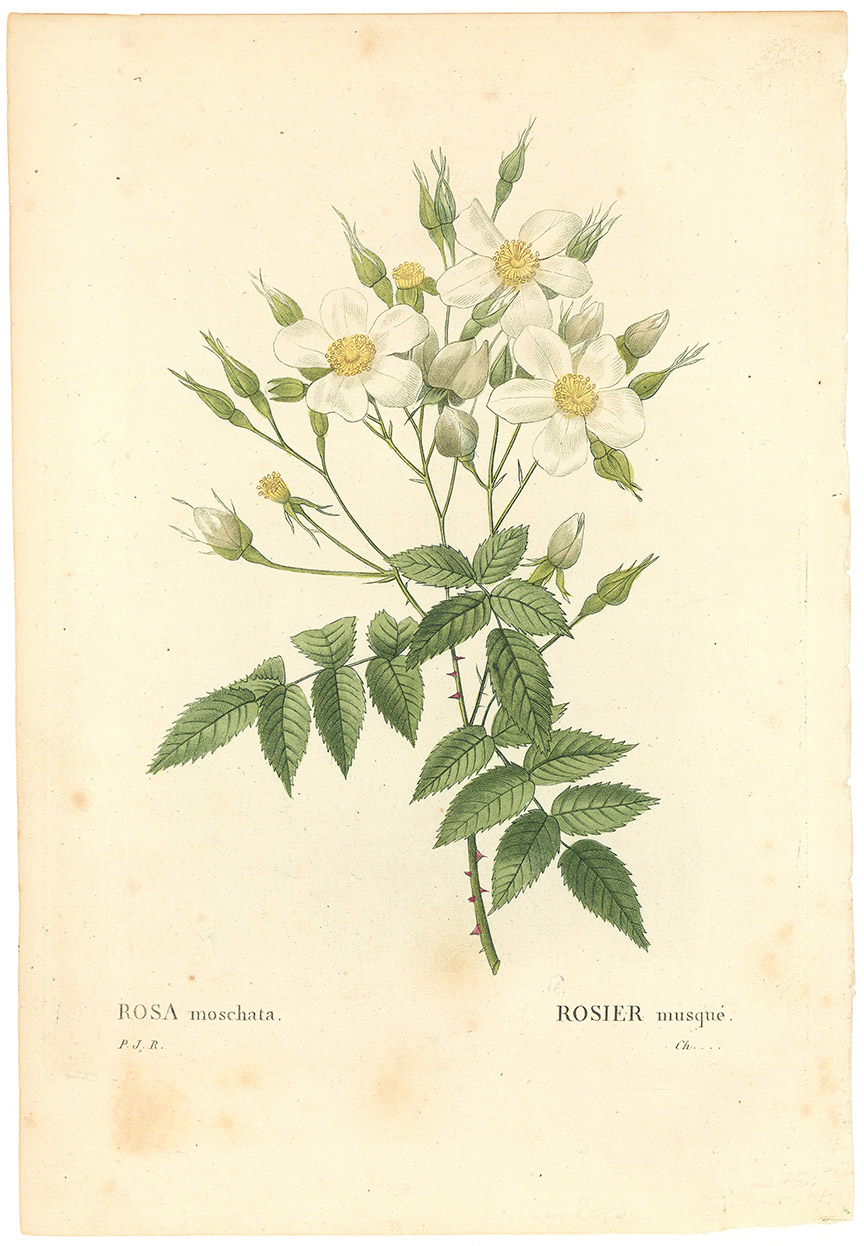 DESCRIPTION: The first octavo edition of Les Roses is a smaller and more accessible version of Pierre-Joseph Redouté's monumental folio edition of the same name. This work, originally published between 1817 and 1824, is one of the most iconic botanical art collections in history, showcasing Redouté's extraordinary talent as a painter of flowers. <br><br> The first octavo edition was published in Paris by C. L. F. Panckoucke, a prominent publisher known for high-quality works in science, literature, and art. <br><br> The octavo edition is more compact than the original folio, with dimensions better suited for personal libraries. It aimed to reach a wider audience without compromising on artistic quality. <br><br> The plates were printed in color using a stipple engraving process. Each print was meticulously finished by hand, preserving the vibrancy and delicate detail that made Redouté's roses famous. The illustrations depict a wide variety of rose species and hybrids, celebrated for their lifelike quality and scientific precision. <br><br> Pierre-Joseph Redouté (1759–1840), often called the "Raphael of Flowers," was a court painter for Marie Antoinette and later for Empress Joséphine. <br><br> Les Roses was commissioned under the patronage of Joséphine, reflecting her passion for roses at her Malmaison estate.