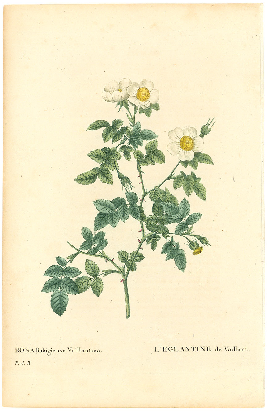 DESCRIPTION: The first octavo edition of Les Roses is a smaller and more accessible version of Pierre-Joseph Redouté's monumental folio edition of the same name. This work, originally published between 1817 and 1824, is one of the most iconic botanical art collections in history, showcasing Redouté's extraordinary talent as a painter of flowers. <br><br> The first octavo edition was published in Paris by C. L. F. Panckoucke, a prominent publisher known for high-quality works in science, literature, and art. <br><br> The octavo edition is more compact than the original folio, with dimensions better suited for personal libraries. It aimed to reach a wider audience without compromising on artistic quality. <br><br> The plates were printed in color using a stipple engraving process. Each print was meticulously finished by hand, preserving the vibrancy and delicate detail that made Redouté's roses famous. The illustrations depict a wide variety of rose species and hybrids, celebrated for their lifelike quality and scientific precision. <br><br> Pierre-Joseph Redouté (1759–1840), often called the "Raphael of Flowers," was a court painter for Marie Antoinette and later for Empress Joséphine. <br><br> Les Roses was commissioned under the patronage of Joséphine, reflecting her passion for roses at her Malmaison estate.