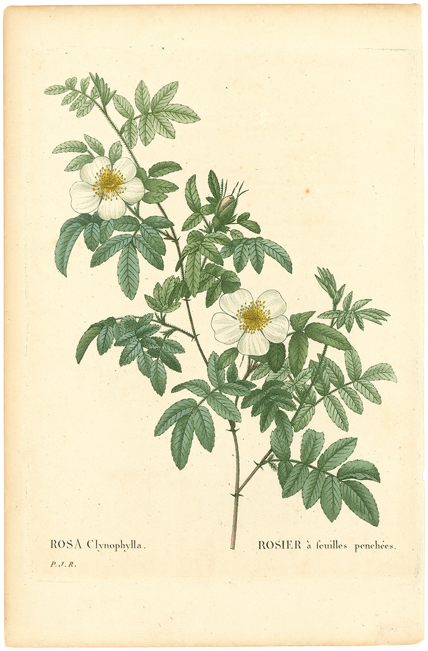 DESCRIPTION: The first octavo edition of Les Roses is a smaller and more accessible version of Pierre-Joseph Redouté's monumental folio edition of the same name. This work, originally published between 1817 and 1824, is one of the most iconic botanical art collections in history, showcasing Redouté's extraordinary talent as a painter of flowers. <br><br> The first octavo edition was published in Paris by C. L. F. Panckoucke, a prominent publisher known for high-quality works in science, literature, and art. <br><br> The octavo edition is more compact than the original folio, with dimensions better suited for personal libraries. It aimed to reach a wider audience without compromising on artistic quality. <br><br> The plates were printed in color using a stipple engraving process. Each print was meticulously finished by hand, preserving the vibrancy and delicate detail that made Redouté's roses famous. The illustrations depict a wide variety of rose species and hybrids, celebrated for their lifelike quality and scientific precision. <br><br> Pierre-Joseph Redouté (1759–1840), often called the "Raphael of Flowers," was a court painter for Marie Antoinette and later for Empress Joséphine. <br><br> Les Roses was commissioned under the patronage of Joséphine, reflecting her passion for roses at her Malmaison estate.