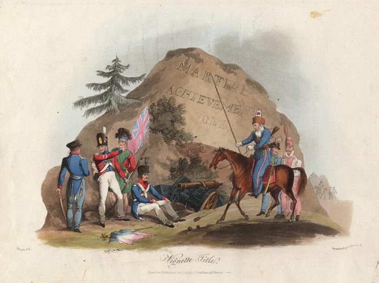 DESCRIPTION: W. Heath del. Aquatint by Sutherland. From "The Martial Achievements of Great Britain and Her Allies" by James Jenkins.