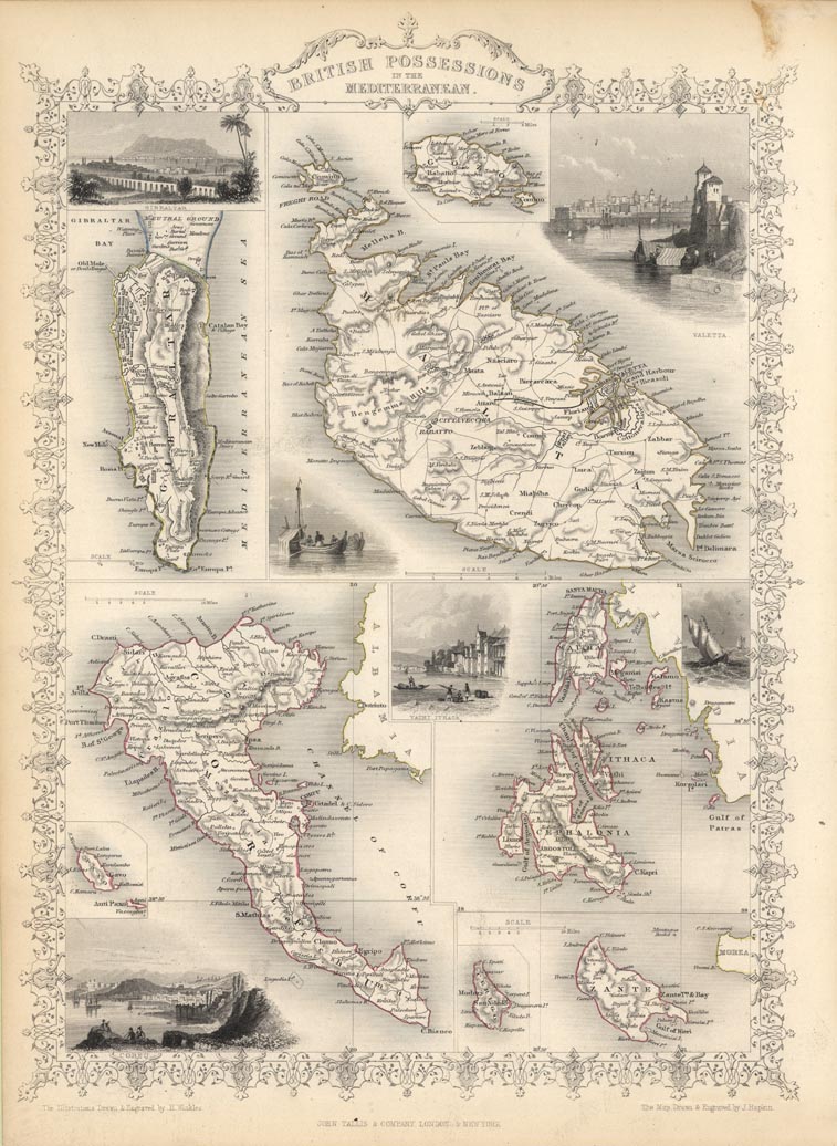 DESCRIPTION: A decorative map with vignettes which include Gibralter, Malta and Corfu. This map is from "The Illustrated Atlas and Modern History of the World"