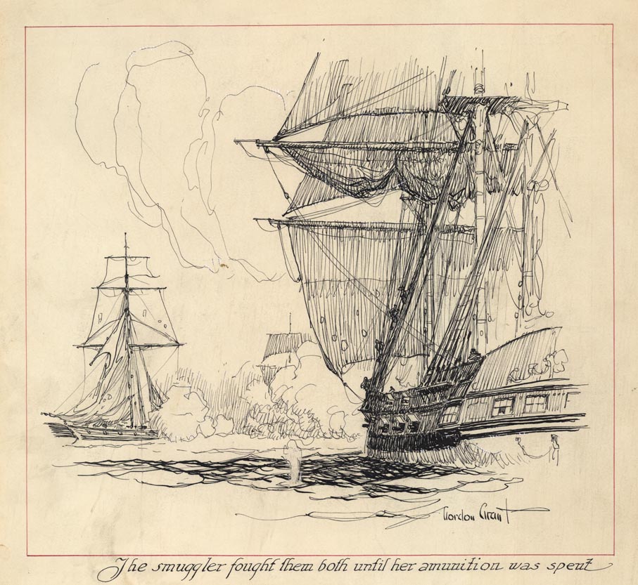 DESCRIPTION: This drawing was used to illustrate "The Life and Adventures of John Nicol, Mariner" published in 1936.