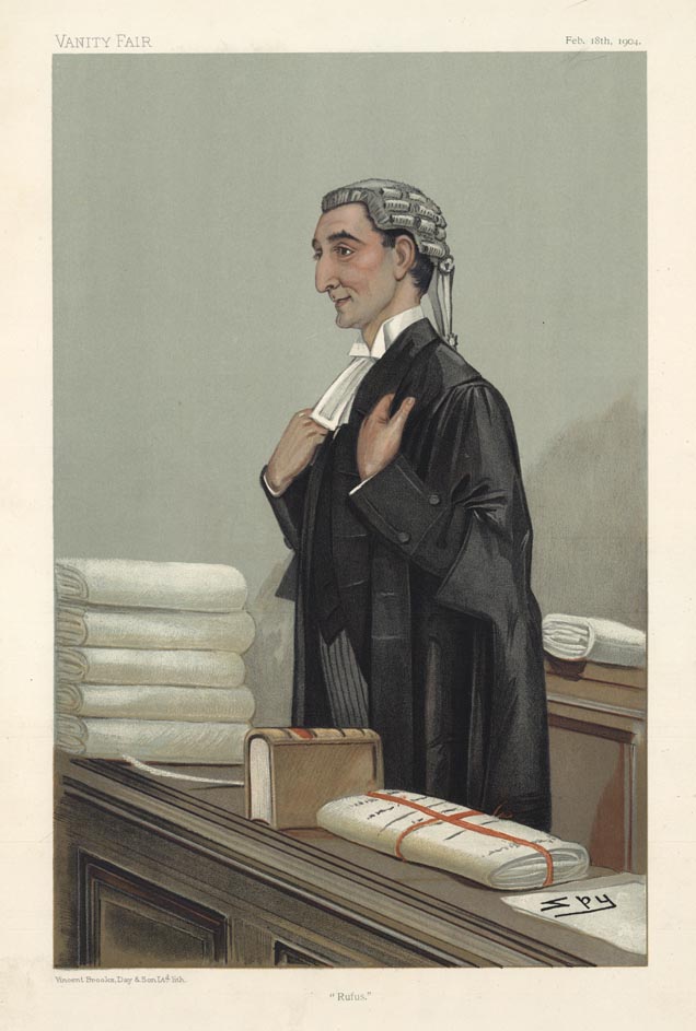 DESCRIPTION: Vanity Fair legal portrait of Rufus Daniel Isaacs. Printed by Vincent Brooks Day & Son.