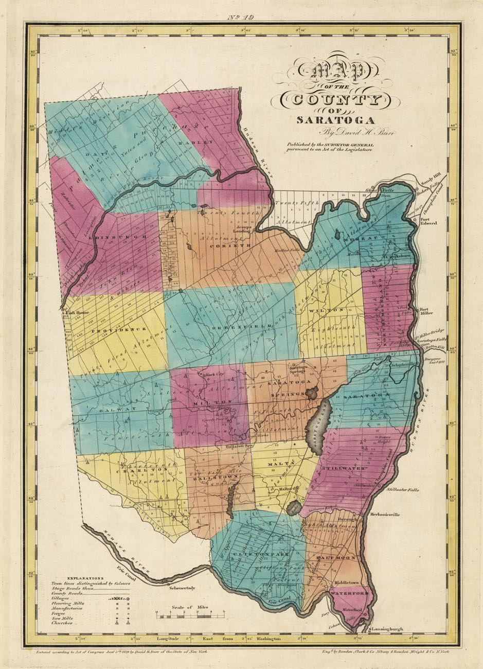 DESCRIPTION: A fine map from Burr's "An Atlas of the State of New York Containing a Map of the State and of the Several Counties. Projected and Drawn by a Uniform Scale... under the Supervision & direction of Simon De Witt, Surveyor General.…" "It is a magnificent publication and was the second atlas of an individual state ever published." (Ristow). Engraved by Rawdon Clark & Co. Albany & Rawdon, Wright & Co. N.Y.