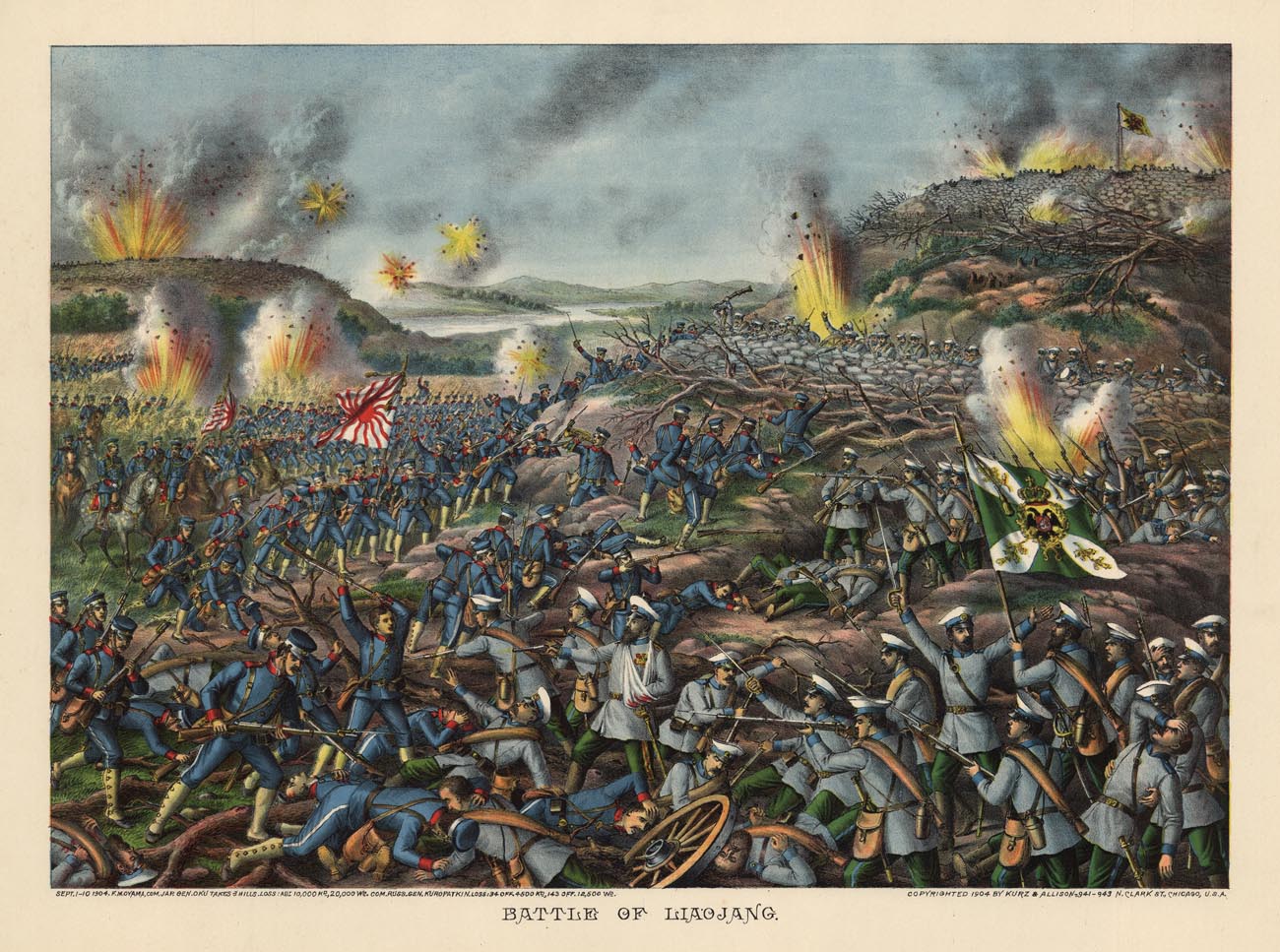DESCRIPTION: Copyrighted 1904 by Kuz & Allison - 941 - 943 N. Clark St., Chicago, U.S.A. The Battle of Lioyang was major confrontation in the Russo-Japanese war in 1904. The Japanese were successfully able to push back the Russian forces out of the city after suffering thousands of casualties.
