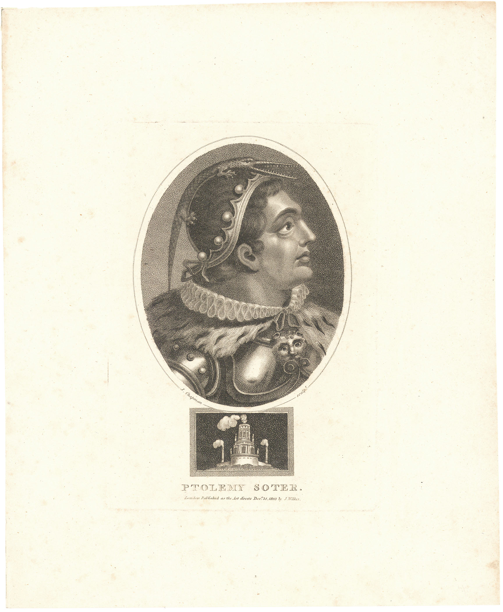 DESCRIPTION: “J. Chapman, sculpt.” From Encyclopaedia Londinensis, Universal Dictionary of Arts, Sciences and Literature. Ptolemy I Soter—also known as Ptolemy Lagides—was one of Alexander the Great’s most trusted generals in the 4th century BC. After Alexander’s death, he became satrap and later king of Egypt, founding the Ptolemaic dynasty and establishing Alexandria as a major center of scholarship and power.