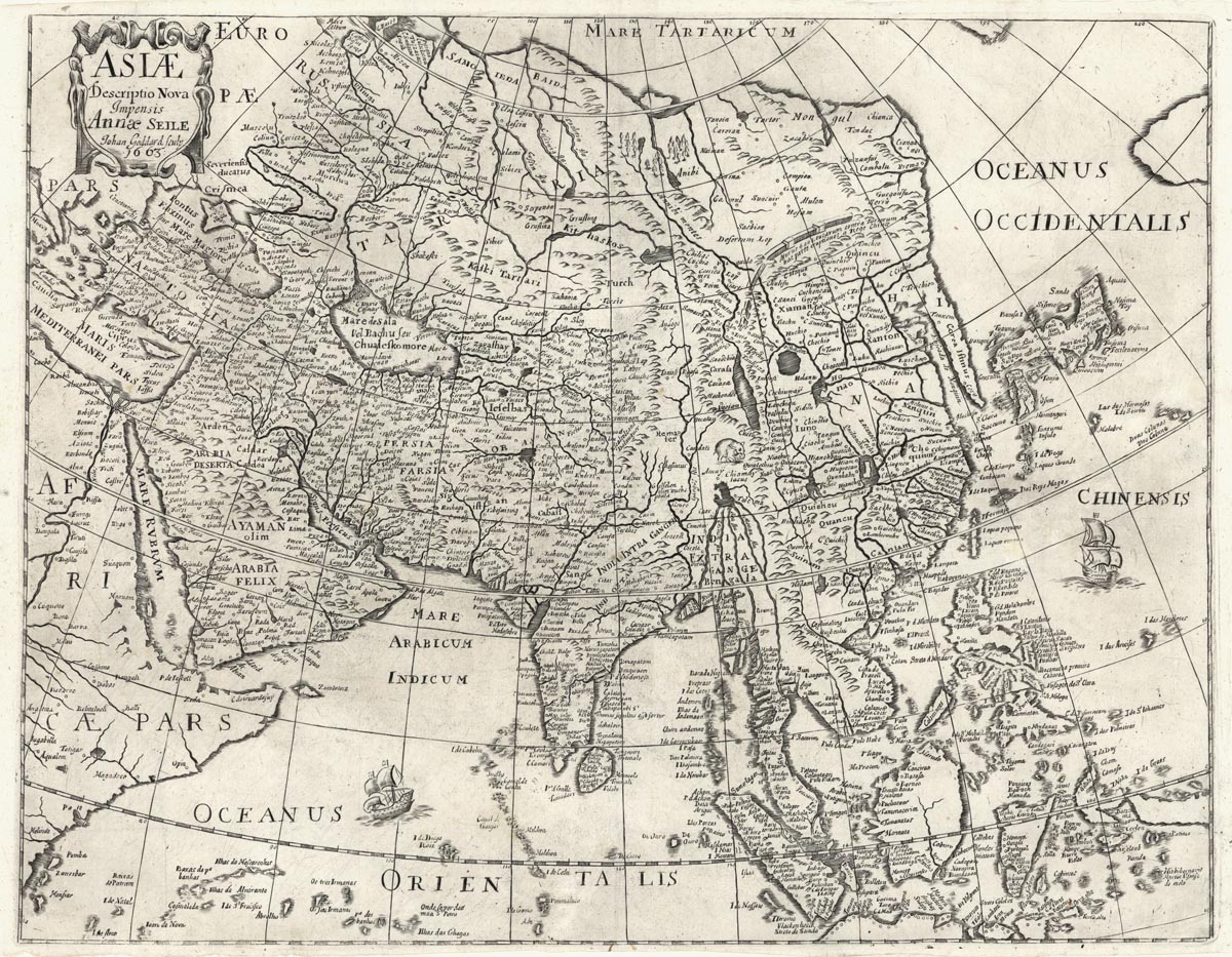 DESCRIPTION: A fine map of Asia and East Indies. This map follows the cartography of Johan Goddard showing a great expanse of water between a truncated Asia and North America, and a very elongated Korean peninsula. Many place names graphically depicting the extent of European knowledge throughout Asia and particularly in the Philippines and East Indies. The Great Wall is depicted. The coastline of Java that is shown suggests that it is quite a bit larger than it is, and New Guinea and the Moluccas are shown as a confused group of islands. Engraved by Johan Goddard. Appeared in Heylyn's “Cosmographie”.