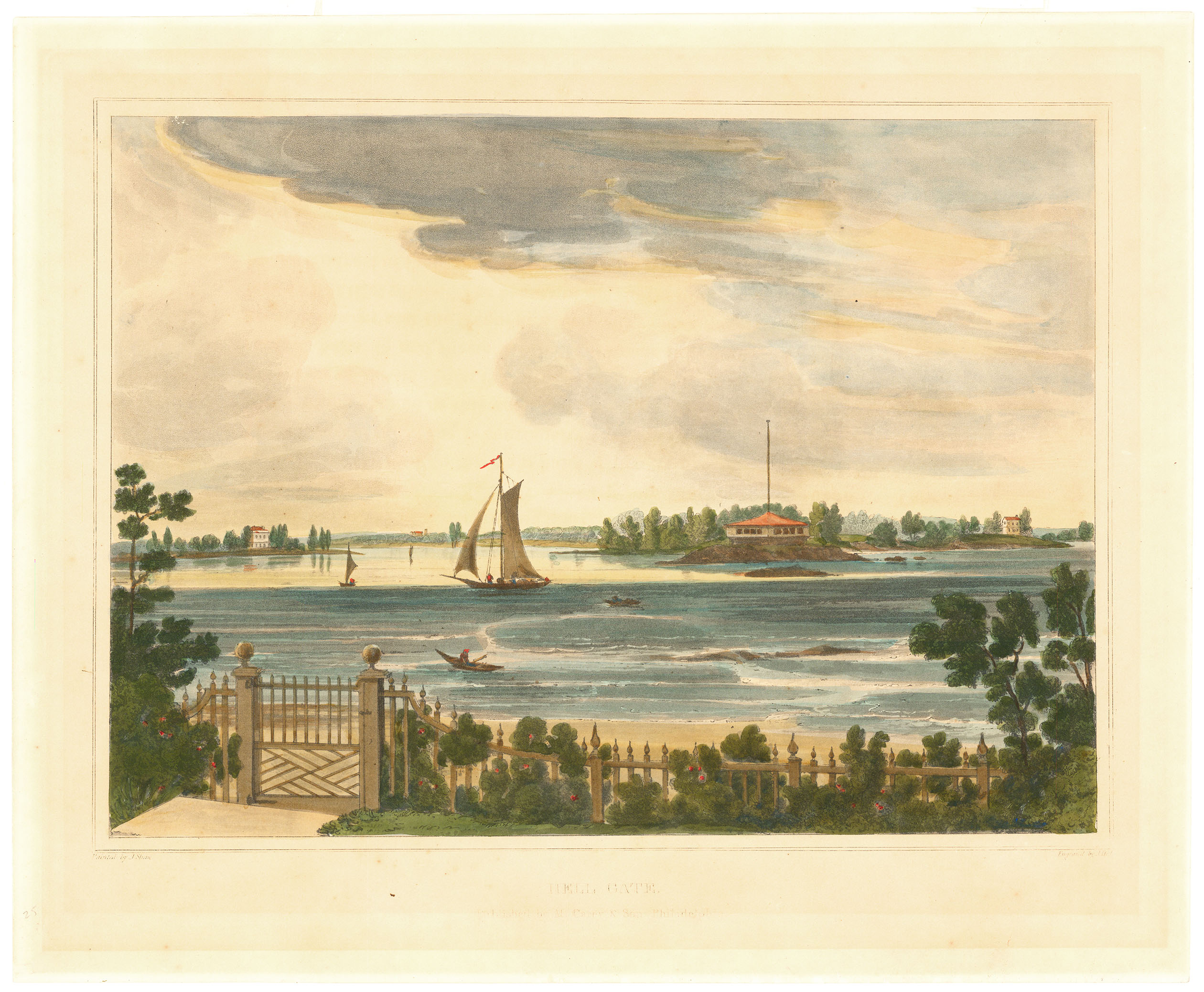 DESCRIPTION: This aquatint is from "Picturesque Views of American Scenery." This series consisted of twenty aquatints that were engraved by John Hill after paintings by Joshua Shaw. The publisher Moses Thomas began the series in 1819. Thomas quickly abandoned the project after only the title page was produced. The firm of Matthew Carey & Son quickly took over project. The series was originally intended to have been issued in six numbers with a total of 36 plates. Each number had wrap paper covers, a vignette title page and letterpress text sheets that described each scene. Likely due to lack of subscribers, the series was never completed. Only four parts were issued for a total of twenty prints. Thomas Ash acquired the rights to the set and republished them in 1835. Either edition is rare and are seldom seen on the market.
