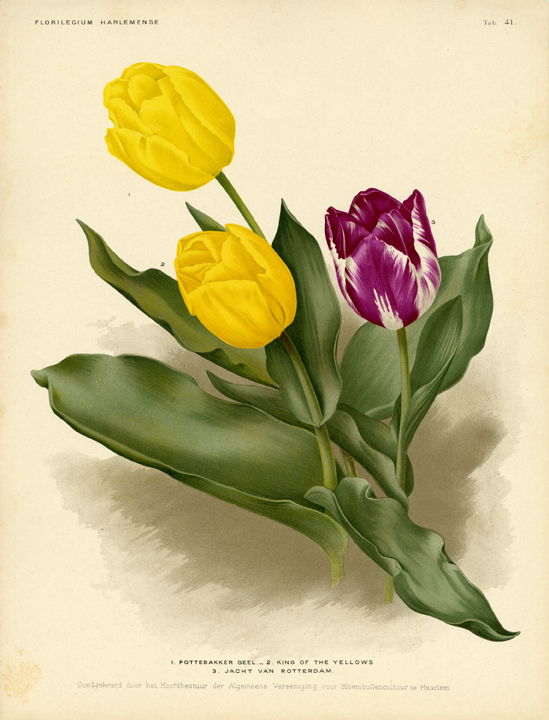 DESCRIPTION: Three varieties of tulips from "Florilegium Harlemense".