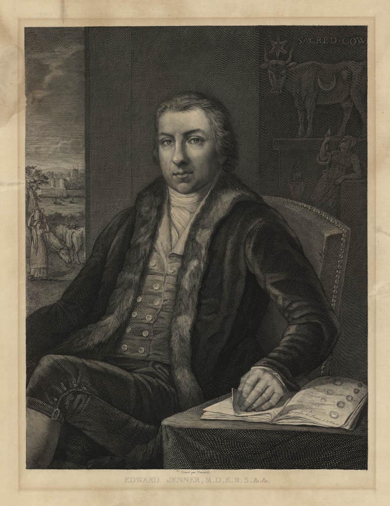 DESCRIPTION: Grave par Monsaldi. Edward Jenner (1749 - 1823) is most famous for creating the smallpox vaccine in 1796. Having grown up in the countryside, Jenner had heard stories of how milkmaids who suffered cowpox never contracted smallpox, and used the theory to test inoculations on several local children, including his own infant son, by placing the pus from cowpox into an incision on their arms. Despite its success Jenner was met with great ridicule. The concept of placing material from a diseased animal into another human being disgusted people, but with time the advantages for doing so caught on and one of the greatest killers of the age took a steady decline.