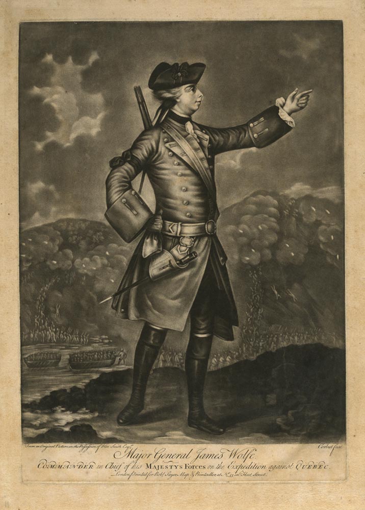 DESCRIPTION: From an original picture in the Possession of Her. Smith Esqr. Mezzotinted by Corbut. London, printed for Robt. Sayer, Map & Printseller, at No.53 in Fleet Street. -- On September 12 and 13th 1759, the English Major General Wolfe, at the age of 31, attempted to take Quebec from the French. In the ensuing battle both he and Marquis de Montcalm (the French commander) lost their lives.