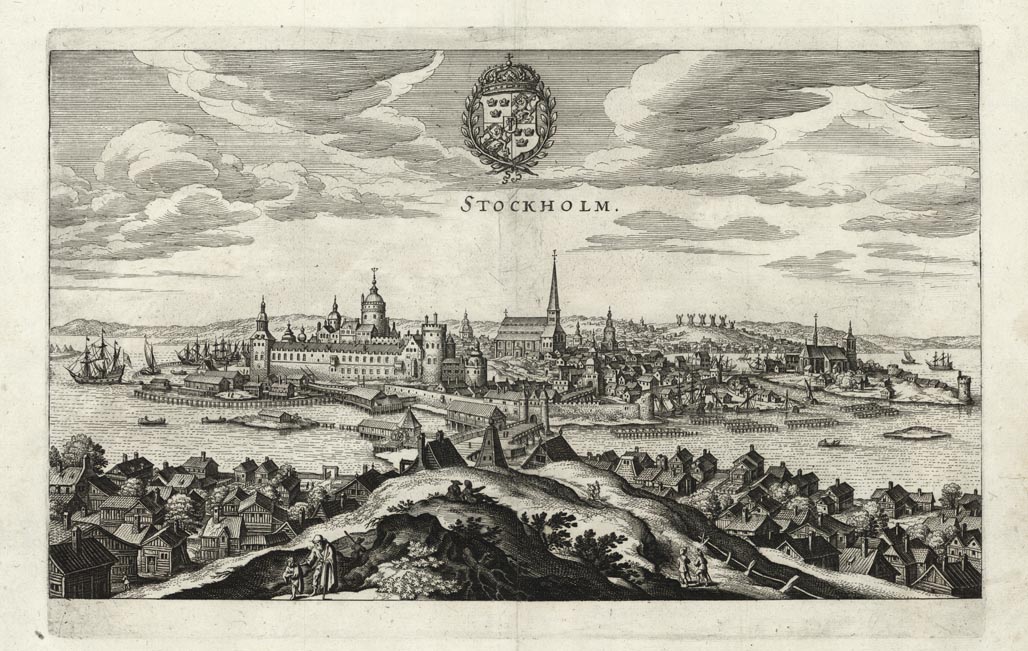 DESCRIPTION: A fine view of the city of Stockholm. From Matthew Merian's "Topographia," published in Frankfort.