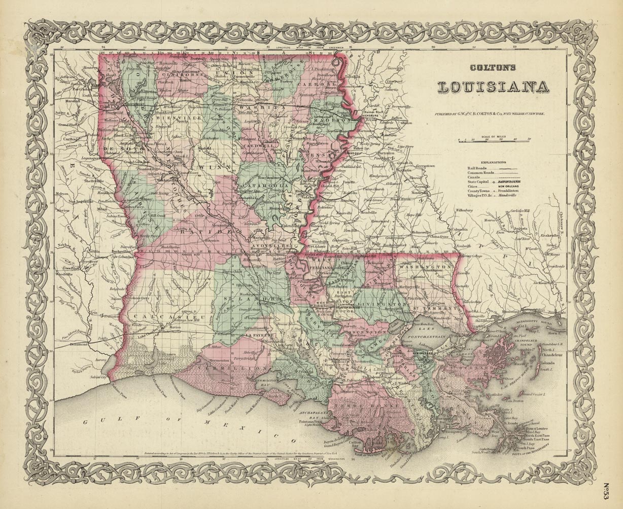 DESCRIPTION: A decorative and well engraved map from "Colton's Atlas of the World." This map show railroads, roads, canals, county seats, etc. A nice bright impression.