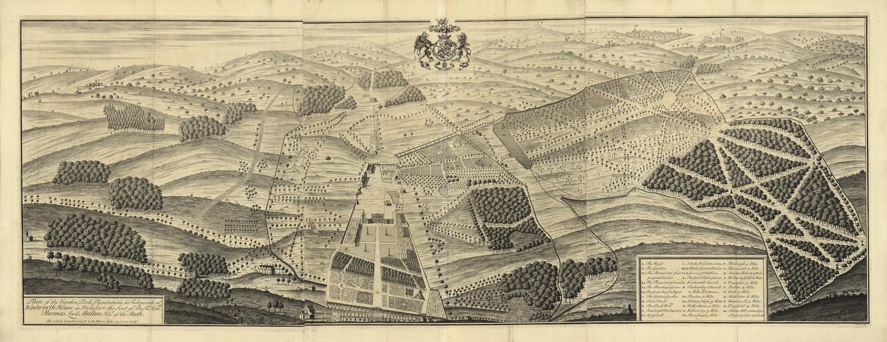 DESCRIPTION: Engraved by N. Whittock, after a drawing by Antony Van den Wyngrerde [sic]. This is a three page view, joined together. A key on the right notes 33 locations such as "The Kitched Garden" and "Melton on ye Hill 6 Miles".