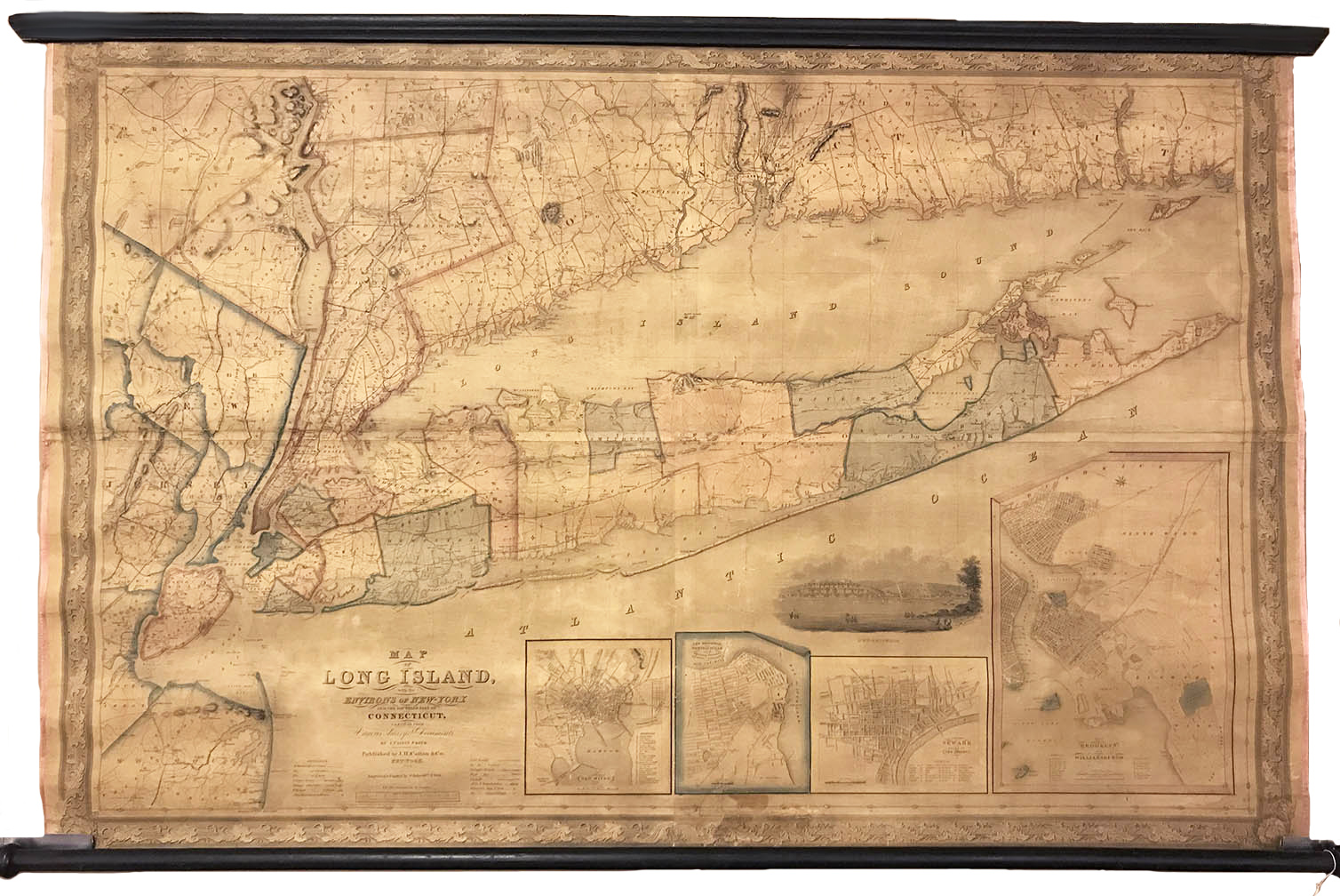 DESCRIPTION: Engraved and printed by S. Stiles & Co. New York.. A fine large scale roller map of Long Island. Insets include a view of New Brighton and maps of New Haven, New Brighton, Newark and a large maps of Brooklyn and Williamsburgh.