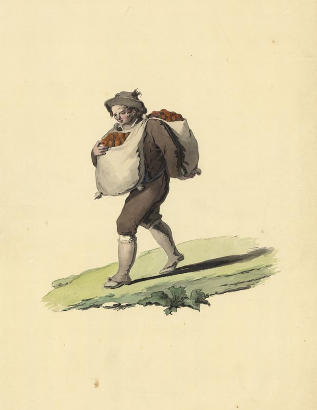 DESCRIPTION: Orange seller. On J. Whatman Turkey Mill paper dated 1828.