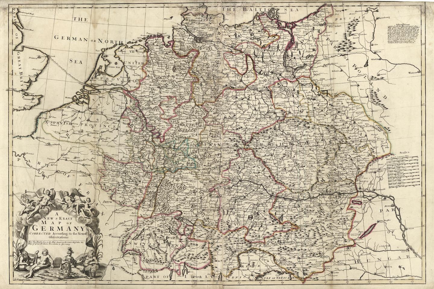 DESCRIPTION: H. Terasson fecit, London. A scarce English imprint. <br><br> A note below the cartouche states: "The Double Line in the Map drawn in this manner Describes the King of Great Brittains Dominions in Germany." George Willdey, 1676–1737 a spectacle and scientific instrument maker and a publisher, went on to become the "most noted toyman of Europe."