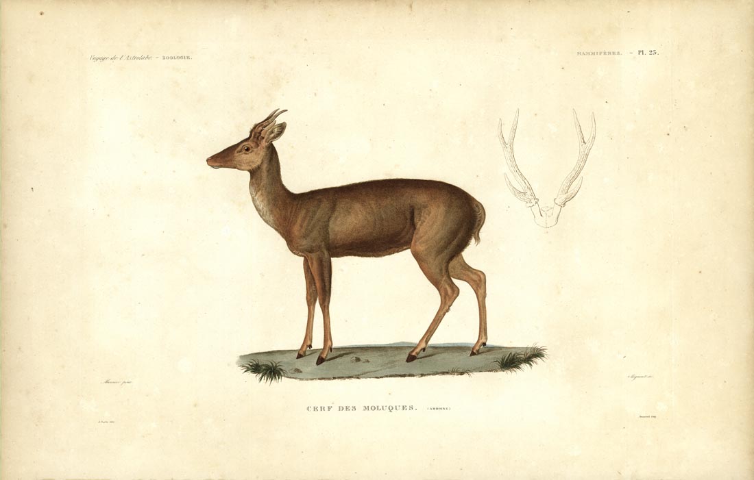 DESCRIPTION: From Voyage de la Corvette L'Astrolabe execute Pendant les Annees 1826-1827-1828-1829 sous le commandement de M. Jules Dumont D'Urville Capitaine de Vaisseau. A French voyage of scientific discovery.<br><br> An animal native to the Indonesian Island of Amboine.