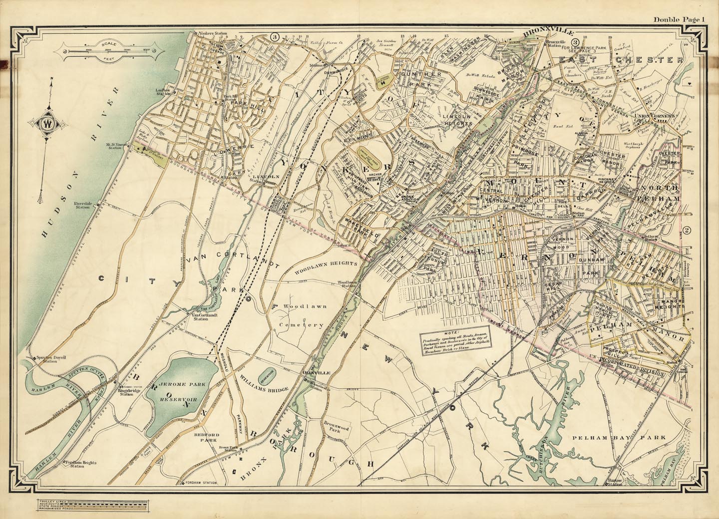DESCRIPTION: This detailed map shows Van Courtland Park and Williams Bridge in the Bronx, Yonkers, Bronxville, Mount Vernon and Pelham. It also shows the roads, railroads, homes and in many cases gives the home-land owners names. This map appeared in "Atlas of the rural country district north of New York City embracing the entire Westchester County, New York. Also a portion of Connecticut. Greenwich, Stamford, New Canaan, Darien, Wilton and Ridgefield." A scarce atlas.
