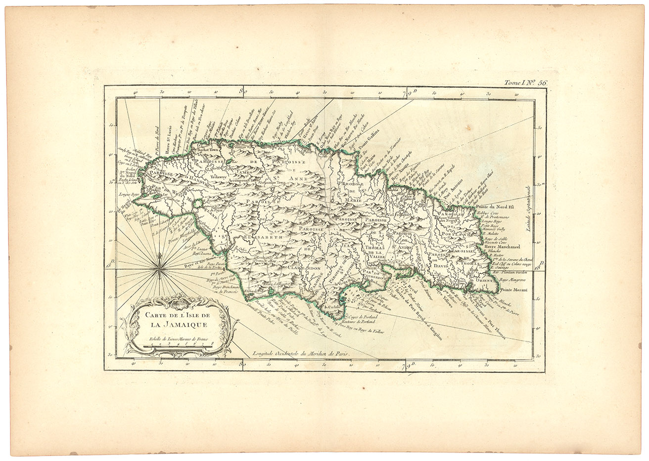 DESCRIPTION: A fine early map of Jamaica from Bellin's "Le Petit Atlas Maritime, ou Recueil de Cartes et de Plans des Quatre Parties du Monde". This atlas or pilot is a wonderful French produced small sized work that depicted a great many parts of the known world.