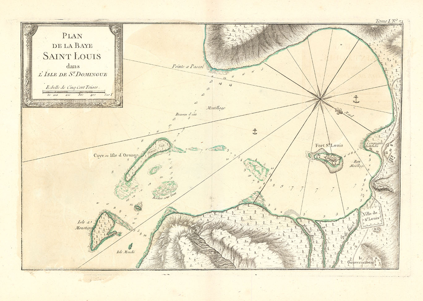 DESCRIPTION: A fine early map of the Bay of St. Louis region in Haiti. Ville de St. Louis (modern Saint-Louis-du-Sud) can be found at the lower right. This map is from Bellin's "Le Petit Atlas Maritime, ou Recueil de Cartes et de Plans des Quatre Parties du Monde". This atlas or pilot is a wonderful French produced small sized work that depicted a great many parts of the known world.
