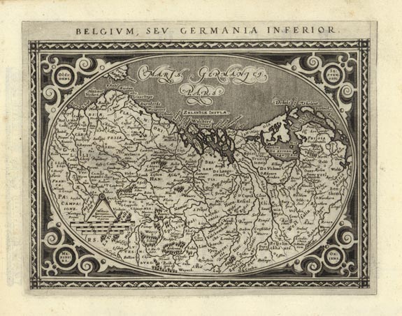 DESCRIPTION: A fine early map of Belgium and part of Germany. This map appeared in Magini's "Geographiae Universae...". Engraved by the Italian master enngraver Girolamo Porro. Several sea monsters are shown in the surrounding waters.