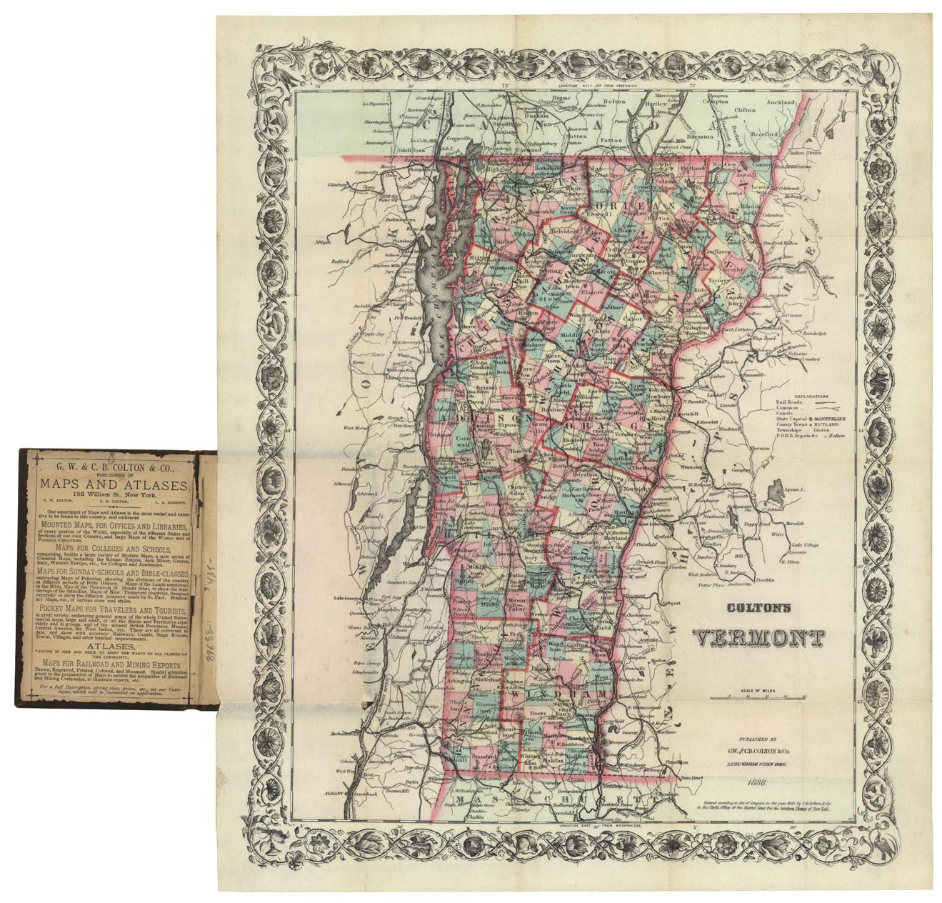 ADDITIONAL INFO: Retains original hard covers with gold embossed title "Colton's map of Vermont"