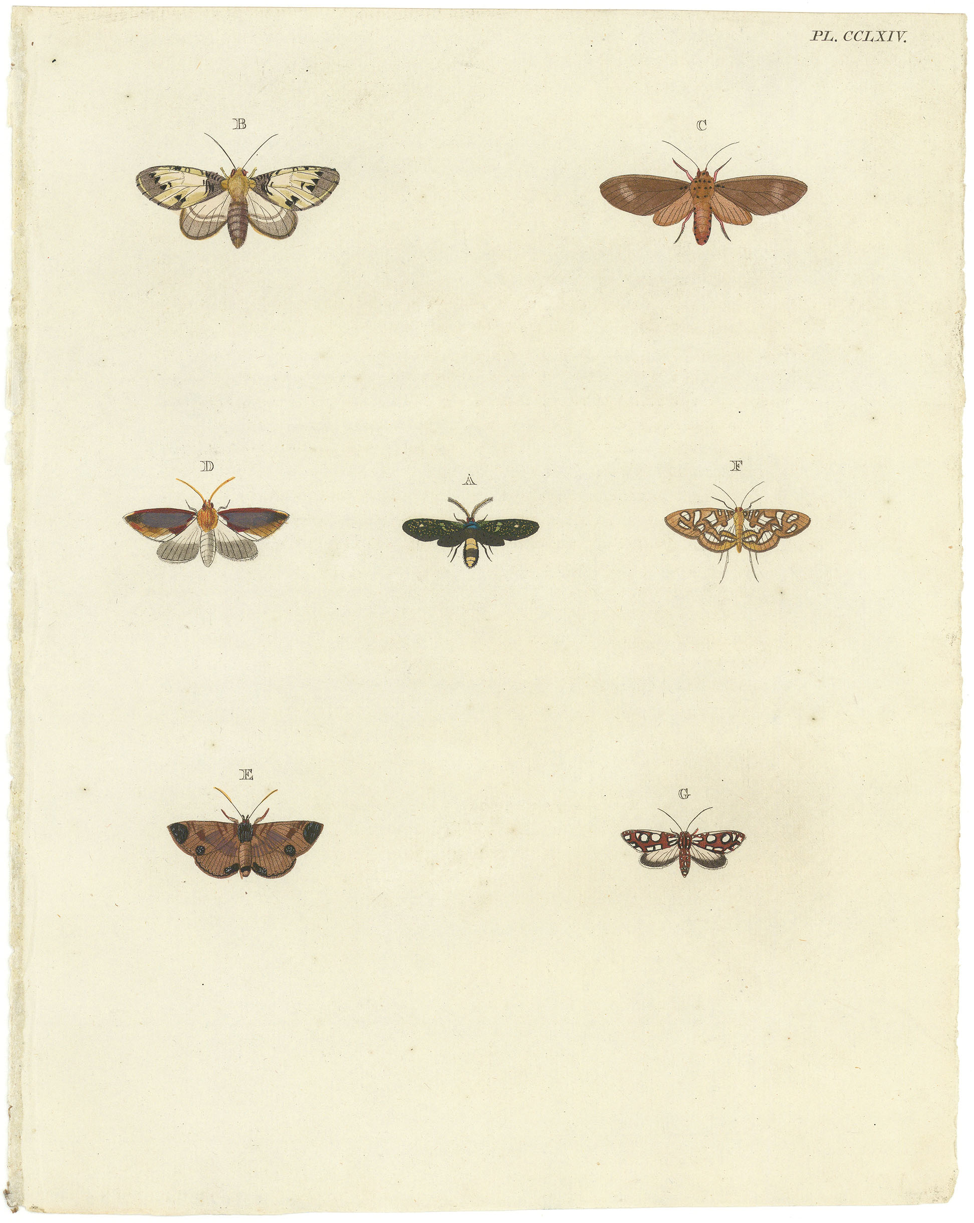 DESCRIPTION: From Pieter Cramer’s De Uitlandsche Kapellen…/Papillons Exotiques (1775–1782), this plate depicts Auratus, Martbesia, Vidua, Filia, Pueritia, Neptis, and Nobilitella. Cramer, a Dutch wool merchant and entomologist, commissioned Gerrit Wartenaar Lambertz to render his extensive collection of butterflies and moths in finely detailed drawings, later engraved and hand colored. As one of the earliest illustrated surveys of lepidoptera from Asia, Africa, and the Americas, the series set new standards for scientific precision and artistic quality in 18th-century natural history publishing.