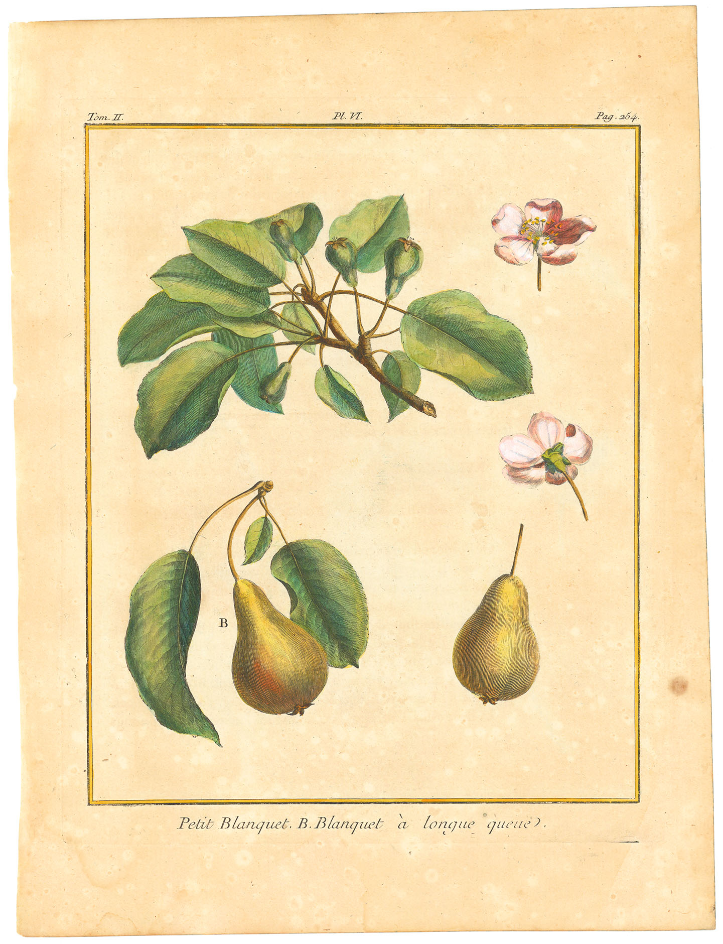 DESCRIPTION: From the first edition of one of the most influential 18th-century works on fruit,"Traite des Arbres Fruitiers" by Henri Louis Duhamel du Monceau.