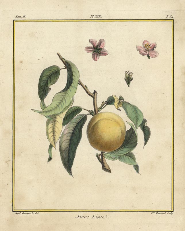 DESCRIPTION: ‘Magd. Basseporte del. Cne. Haussard Sculp. ‘From one of the most influential 18th-century works on fruit,"Traite des Arbres Fruitiers" by Henri Louis Duhamel du Monceau.