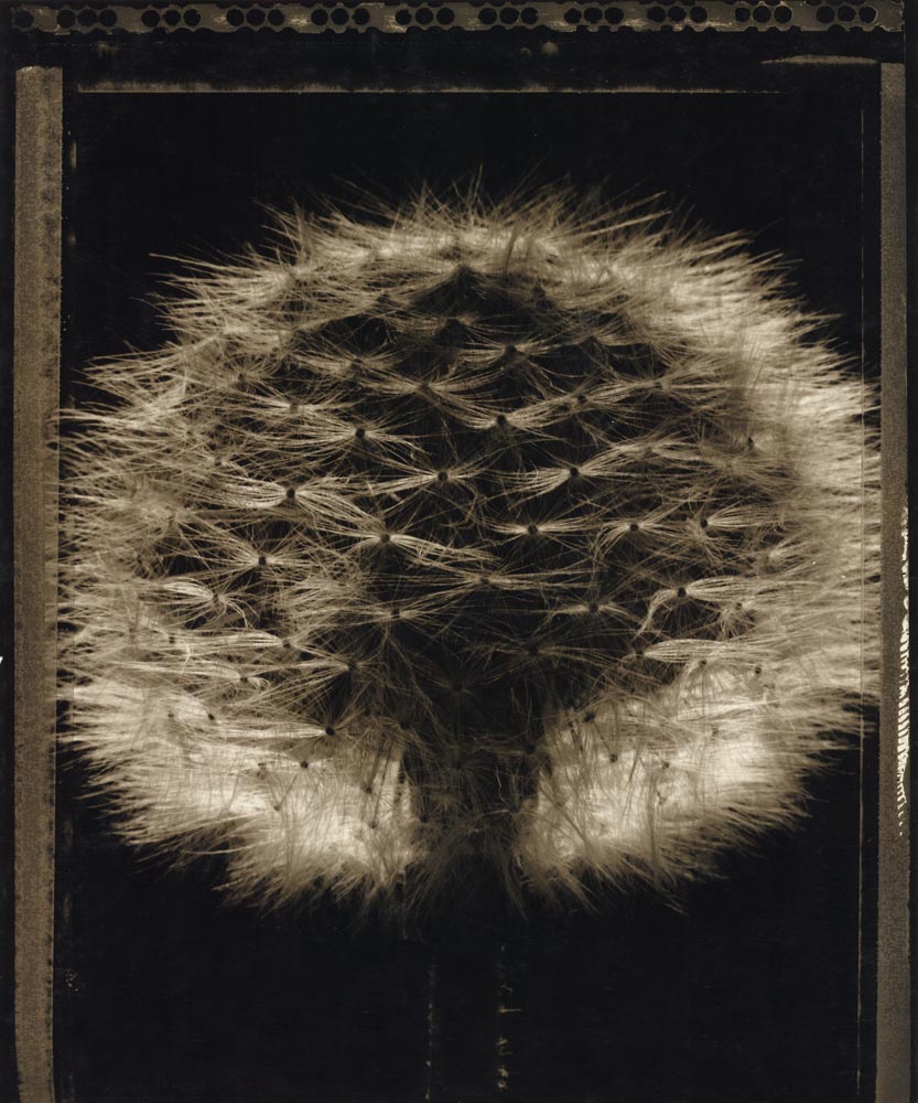 DESCRIPTION: "This Botanical print was created in the studio with a large format 4x5 camera using Polaroid film that has a negative included." This print was crafted using the Polaroid negative and fiber based silver gelatin paper. "It takes several prints of various densities to come up with a final product. The Negative is like a score for music that is created from nature, and the print has been manipulated to show all the nuances of a performance."