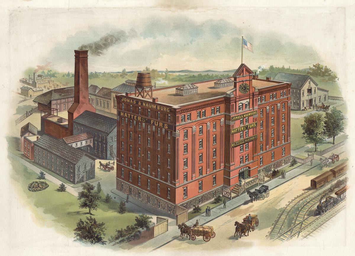 DESCRIPTION: Founded in 1890, Jonas & Naumburg imported and prepared furs for hat manufacturing. They had factories in New York City as well as Stamford and South Norwalk, Connecticut.