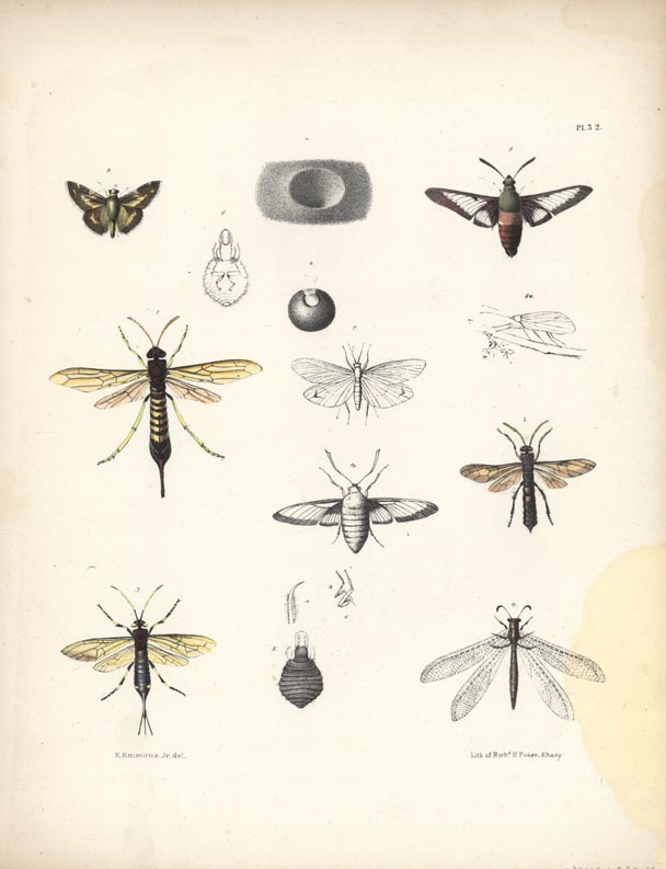 DESCRIPTION: From "Natural History of New York. Agriculture of New - York: Composition and Distribution of the Soils and Rocks...More Common and Injurious Species of Insects." Text on plate; E. Emmons, Jr. Del., Lith. of Richd. H. Pease, Albany.