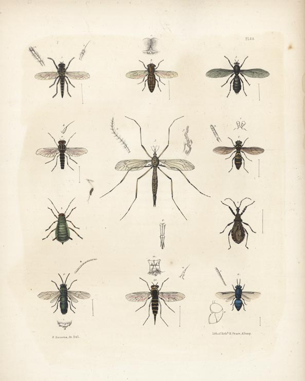 DESCRIPTION: From "Natural History of New York. Agriculture of New - York: Composition and Distribution of the Soils and Rocks...More Common and Injurious Species of Insects." Text on plate; E. Emmons, Jr. Del., Lith. of Richd. H. Pease, Albany.