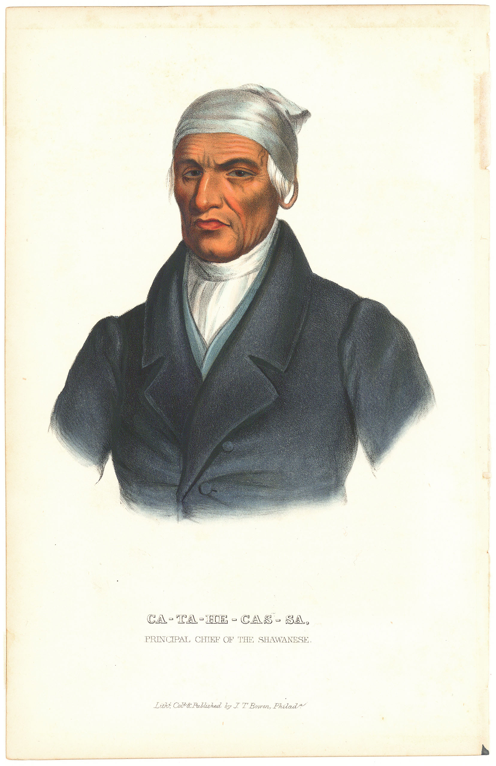 DESCRIPTION: From the octavo edition of "History of the Indian Tribes of North America" by Thomas L. McKenney and James Hall. Lithographed, printed and colored by J. T. Bowen, Philadelphia.