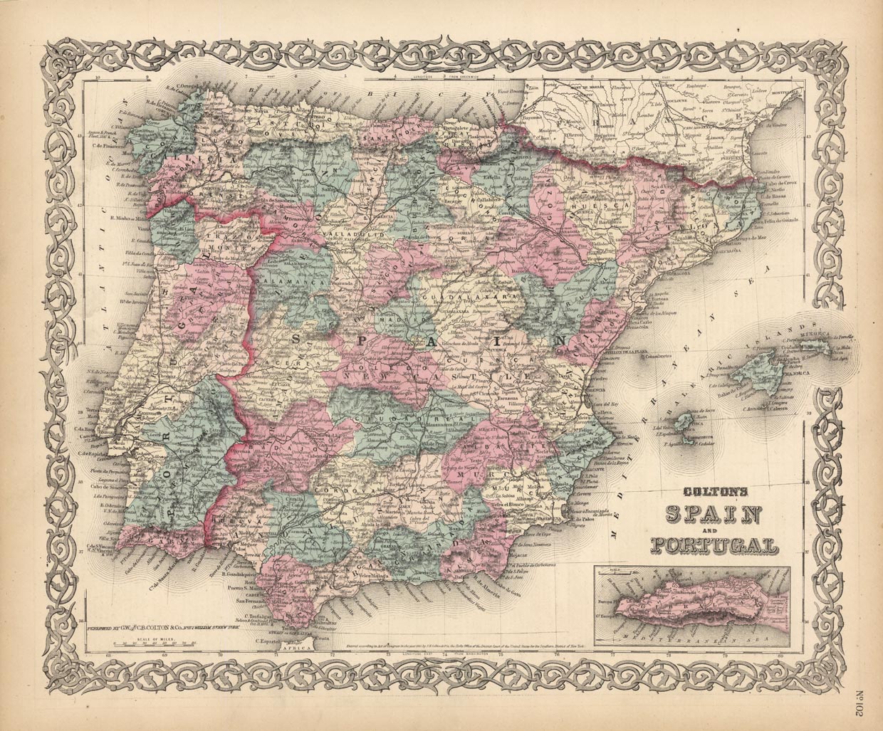 DESCRIPTION: A decorative and well engraved map from "Colton's General Atlas." Included in this map is an inset map of Gibraltar.