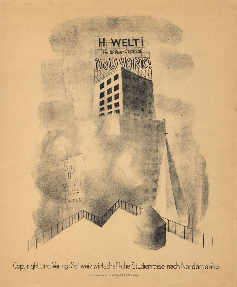 DESCRIPTION: The frontispiece from Welti's portfolio "H .Welti - 12 Drawings, New York!" Total edition 500 (200 signed, 300 unsigned). The portfolio is rare. <br><br>