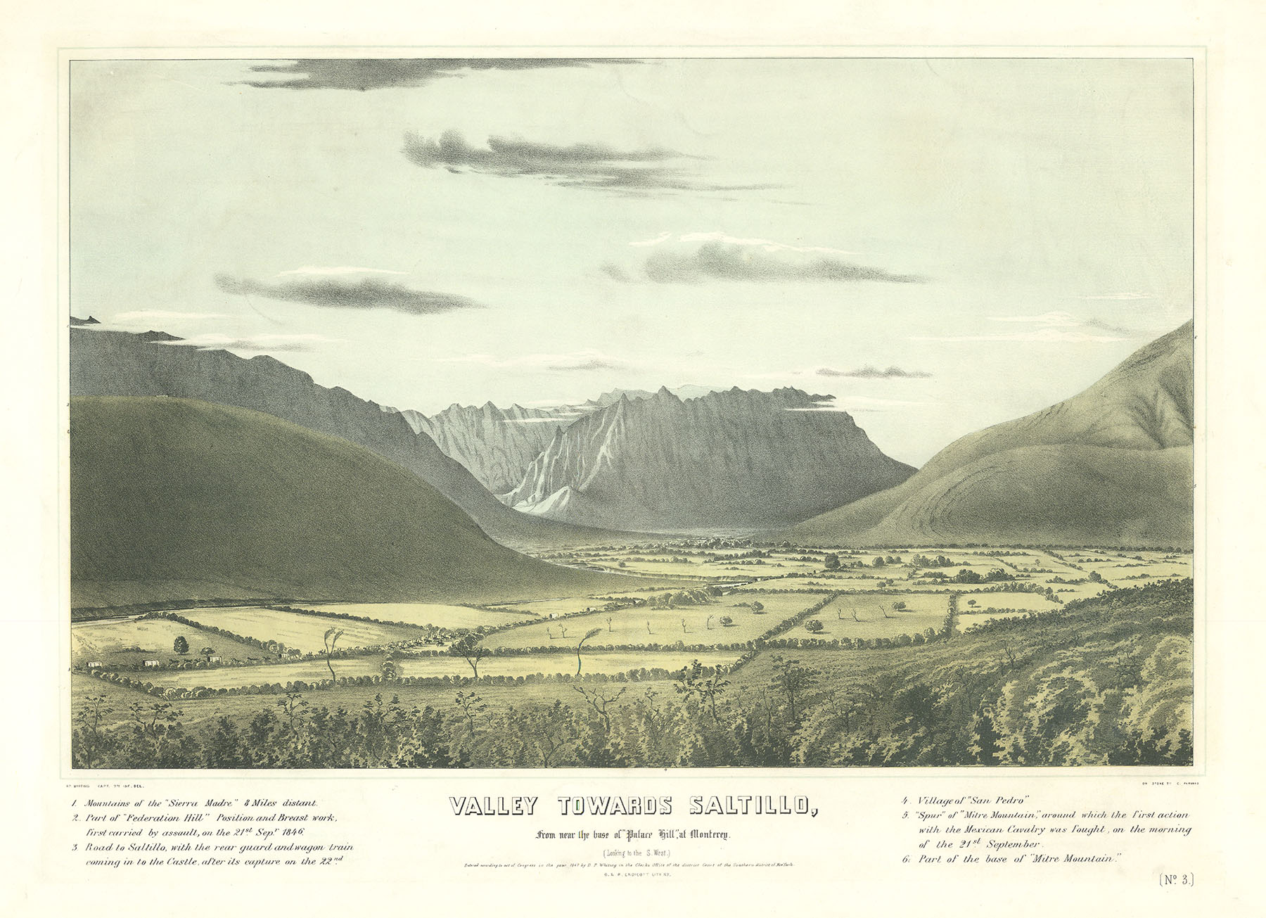 DESCRIPTION: D.P. Whiting Capt. 7th Inf. del. On stone by C. Parsons. <br><br> A view of Monterrey, Mexico, where the Battle of Monterrey took place during the Mexican-American War (1846-1848).
