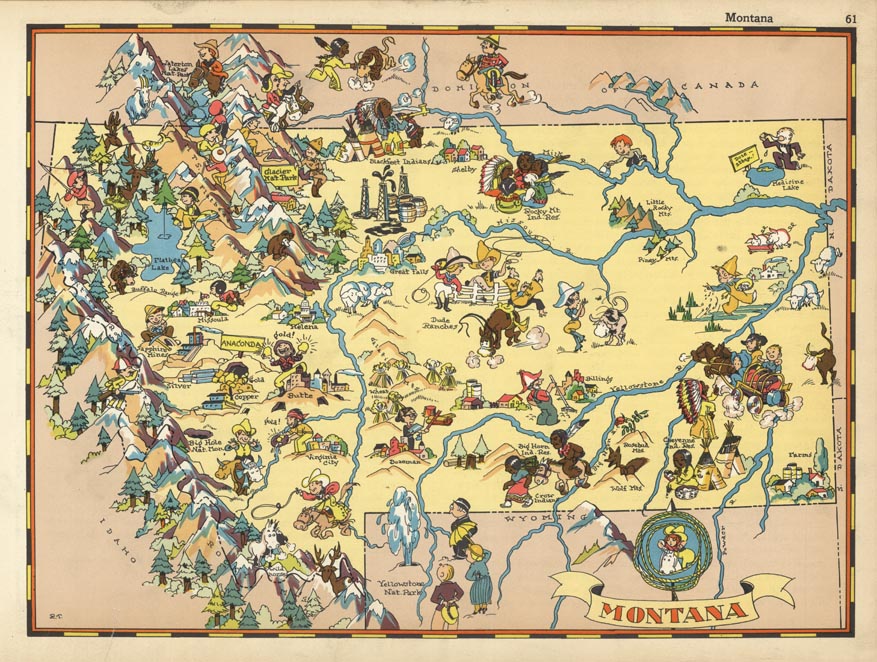 DESCRIPTION: This fascinating pictorial map was published in 1935 by the famous cartographer & illustrator, Ruth Taylor (White). It appeared in "Our U.S.A - A Gay Geography," with the maps done by Ruth Taylor and the text by her husband Frank Taylor. These maps are bold, colorful, and are fun to study. They give a local color and flavor giving cultural stereotypes, industries and activities in the state.