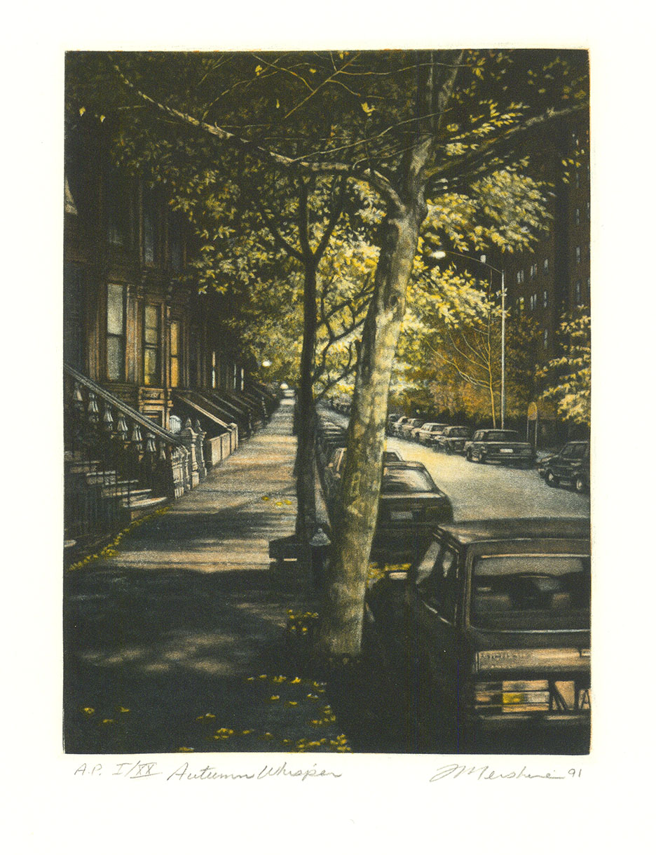 DESCRIPTION: Signed, titled and dated in pencil. A scene on Berkeley Place in Brooklyn.