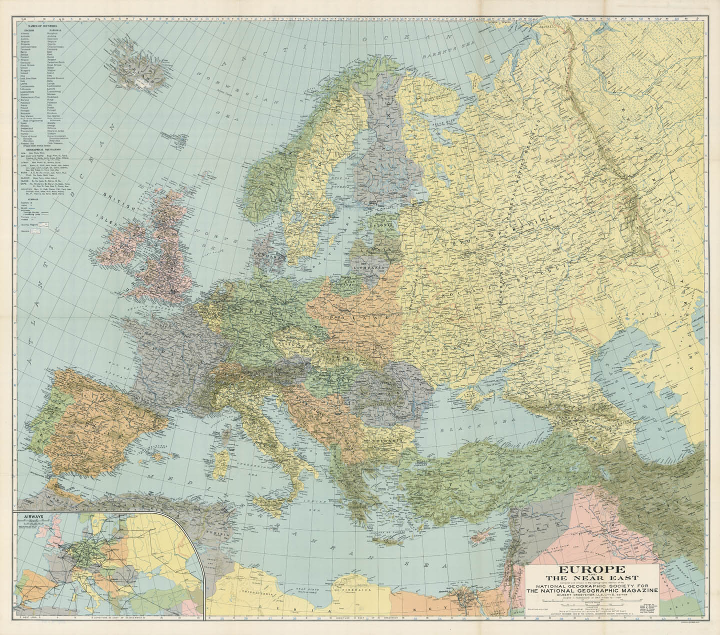 DESCRIPTION: Compiled and drawn in the cartographic section of the National Geographic Society for the National Geographic Magazine. Gilbert Grosvenor. Editor. Printed by A. Hoen & Co. Baltimore, MD.