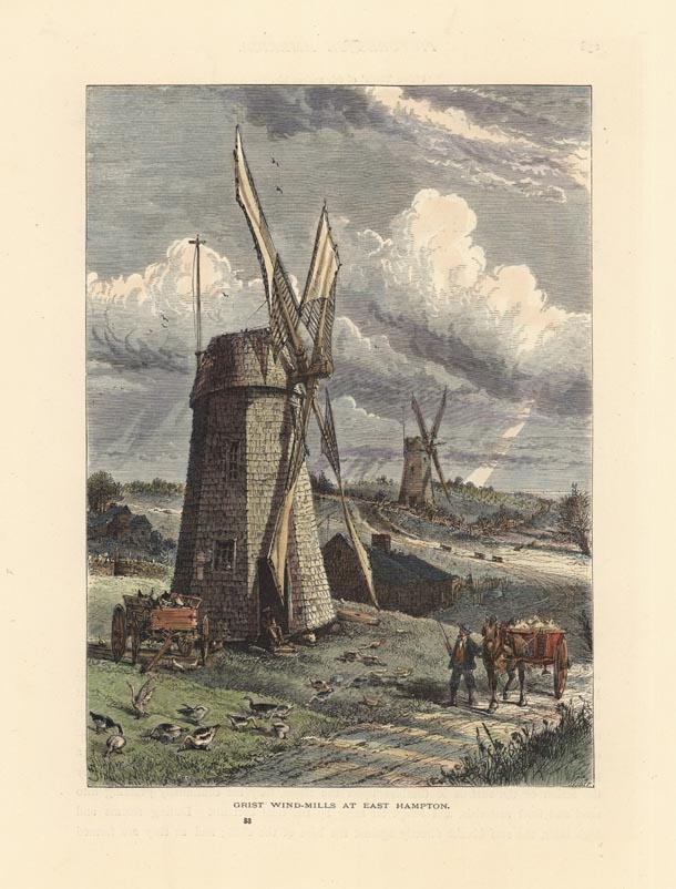 DESCRIPTION: From Picturesque America. The ocean can be seen beyond the gathered wheat field. "The coast of Long Island, on the south side, from Montauk Point to Nepeague Beach, a distance of three miles, is constantly washing away by the action of the heavy surf beyond the base of the cliffs, protected only by narrow shingle beaches of a few yards or rods in width." - W. W. Mather c.1840.