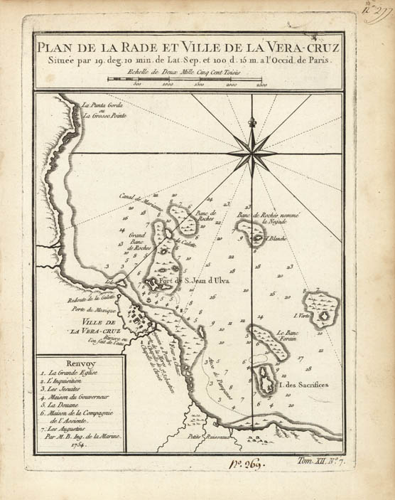 DESCRIPTION: Bellin’s map of the port of Vera Cruz, Mexico which appeared in Prevost's "L'Histoire Generale des Voyages".<br><br> The cartographer Jacques Nicolas Bellin (1703-1772) was one of the most important and proficient French cartographers of the eighteenth century. He was appointed the first Ingenieur Hydrographe de la Marine, and also the Official Hydrographer to the French King. <br><br>