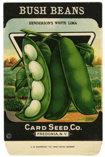 DESCRIPTION: An unused seed package for Bush Beans issued by the Card Seed Company. The Card seed company was in business between 1908 and c.1925.<br><br>Card printed by the Genesee Valley Litho Co. Rochester, NY. The Genesee Valley Lithographic Company was a regional supplier of labels to the agricultural industry in Western New York