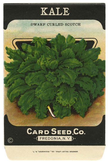 • DESCRIPTION: An unused seed package for Kale (Dwarf Curled Scotch) issued by the Card Seed Company. The Card seed company was in business between 1908 and c.1925.<br><br>Card printed by the Genesee Valley Litho Co. Rochester, NY. The Genesee Valley Lithographic Company was a regional supplier of labels to the agricultural industry in Western New York