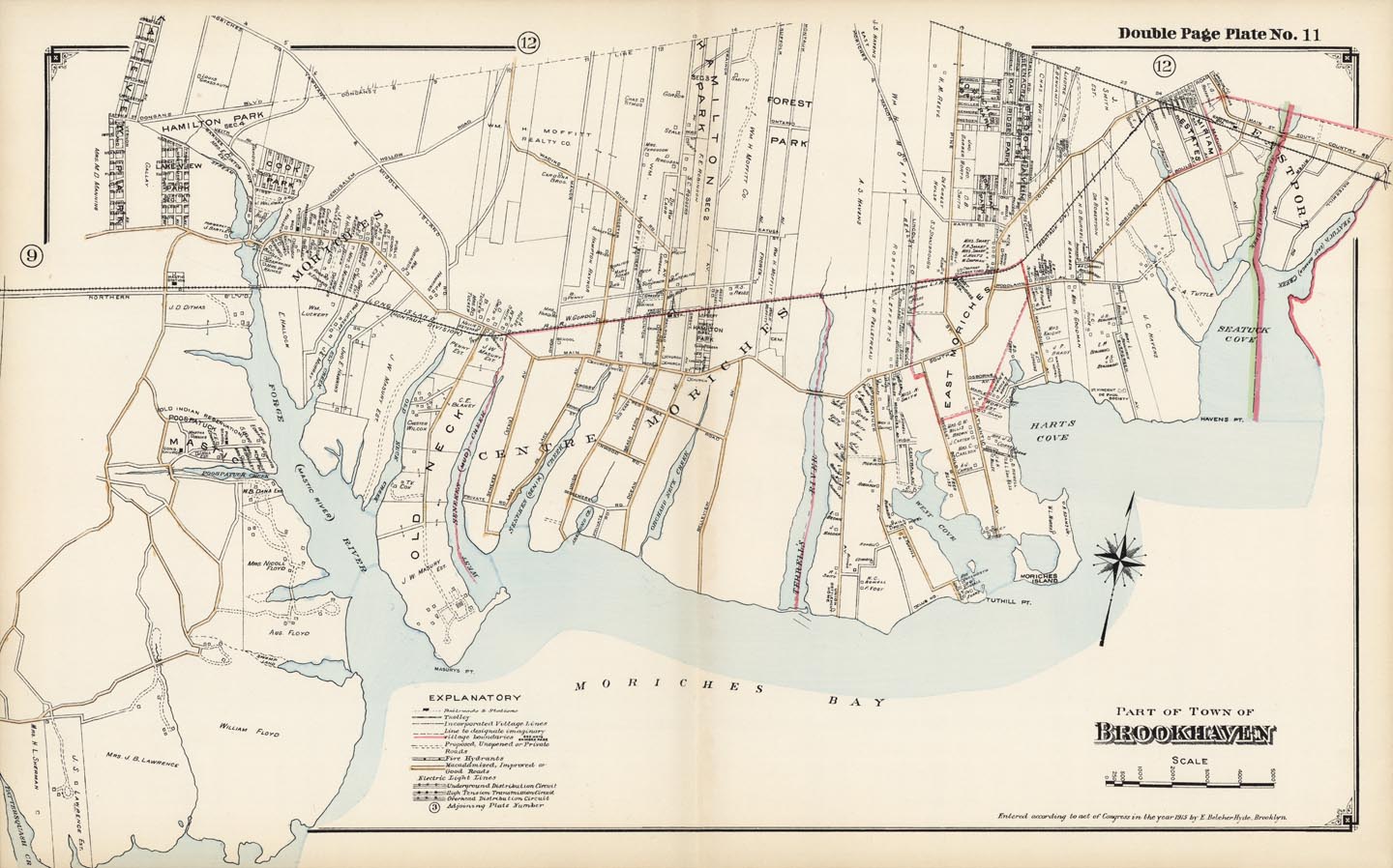 DESCRIPTION: This map shows an area from Pattersquash Creek to Seatuck Cove. Property lines, outline of homes and landowners names are given. This map is from "Atlas of a part of Suffolk County, Long Island…."
