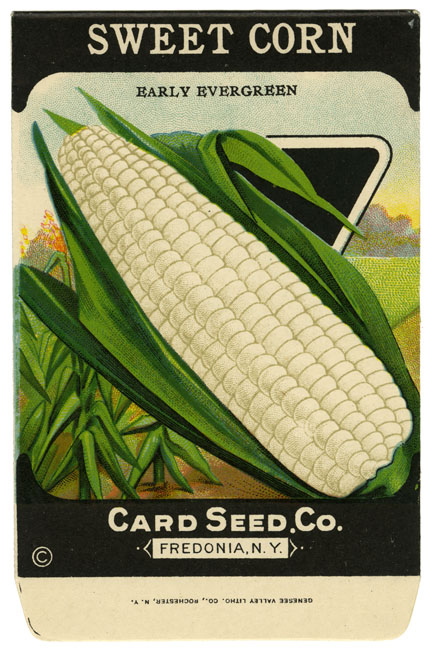 DESCRIPTION: An unused seed package for Sweet Corn issued by the Card Seed Company. The Card seed company was in business between 1908 and c.1925.<br><br> Card printed by the Genesee Valley Litho Co. Rochester, NY. The Genesee Valley Lithographic Company was a regional supplier of labels to the agricultural industry in Western New York