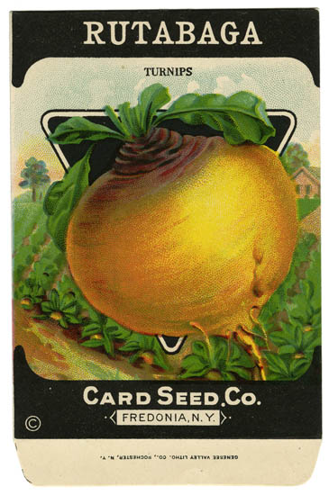 DESCRIPTION: An unused seed package for Rutabaga Turnips issued by the Card Seed Company. The Card seed company was in business between 1908 and c.1925.<br><br> Card printed by the Genesee Valley Litho Co. Rochester, NY. The Genesee Valley Lithographic Company was a regional supplier of labels to the agricultural industry in Western New York.