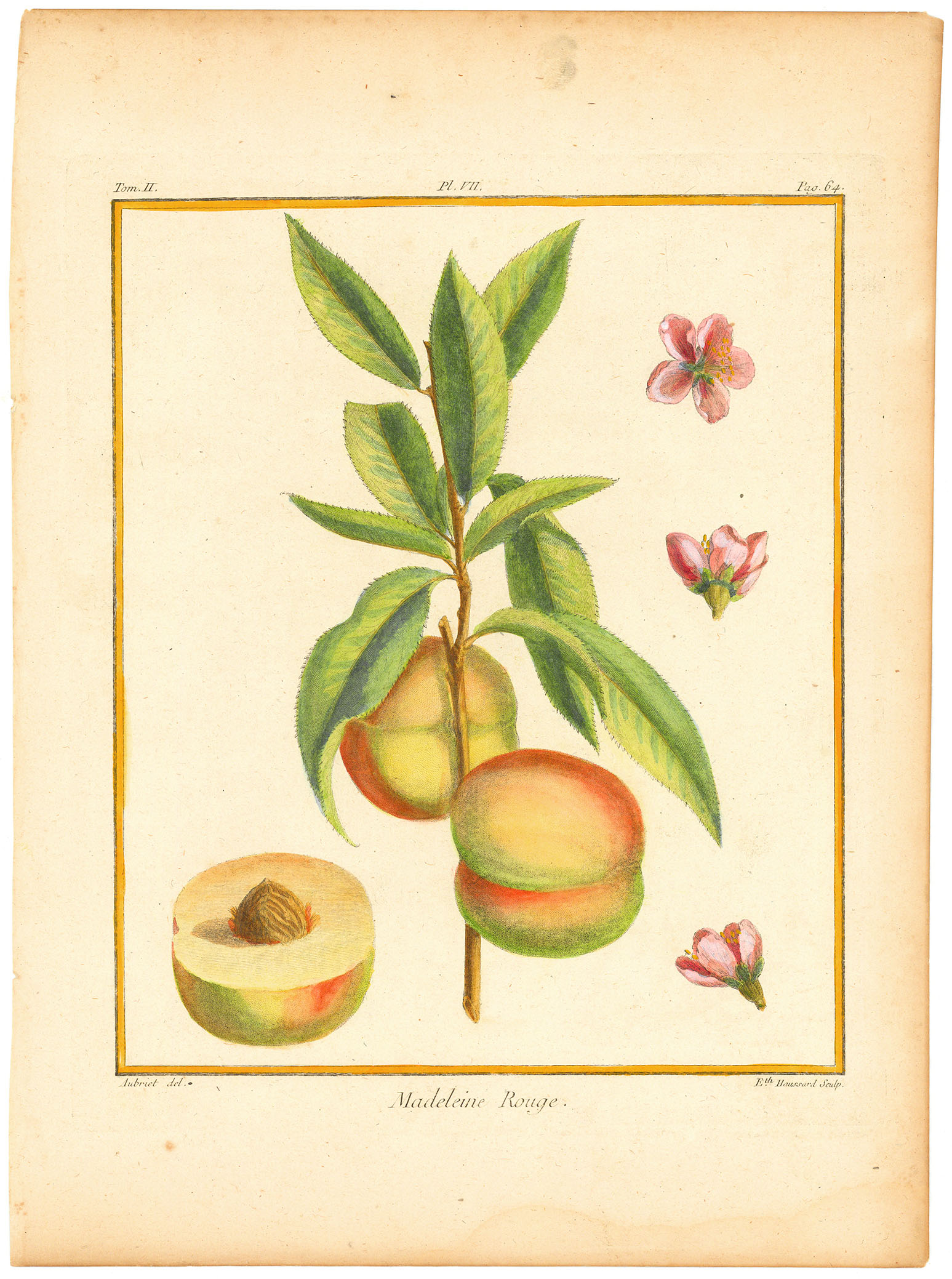 DESCRIPTION: ‘Aubriet del. Loyer Sculp.' From one of the most influential 18th-century works on fruit, "Traite des Arbres Fruitiers" by Henri Louis Duhamel du Monceau. Published in Paris, 1768.